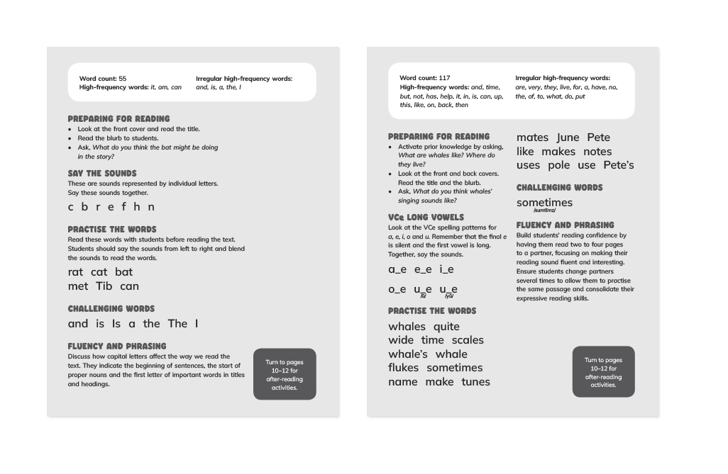 Each book gives book gives students ample practice of the phonic focus and supports teachers with before- and after-reading activities. Be guided by our comprehensive scope and sequence or cover gaps in your current program with customisable packs.