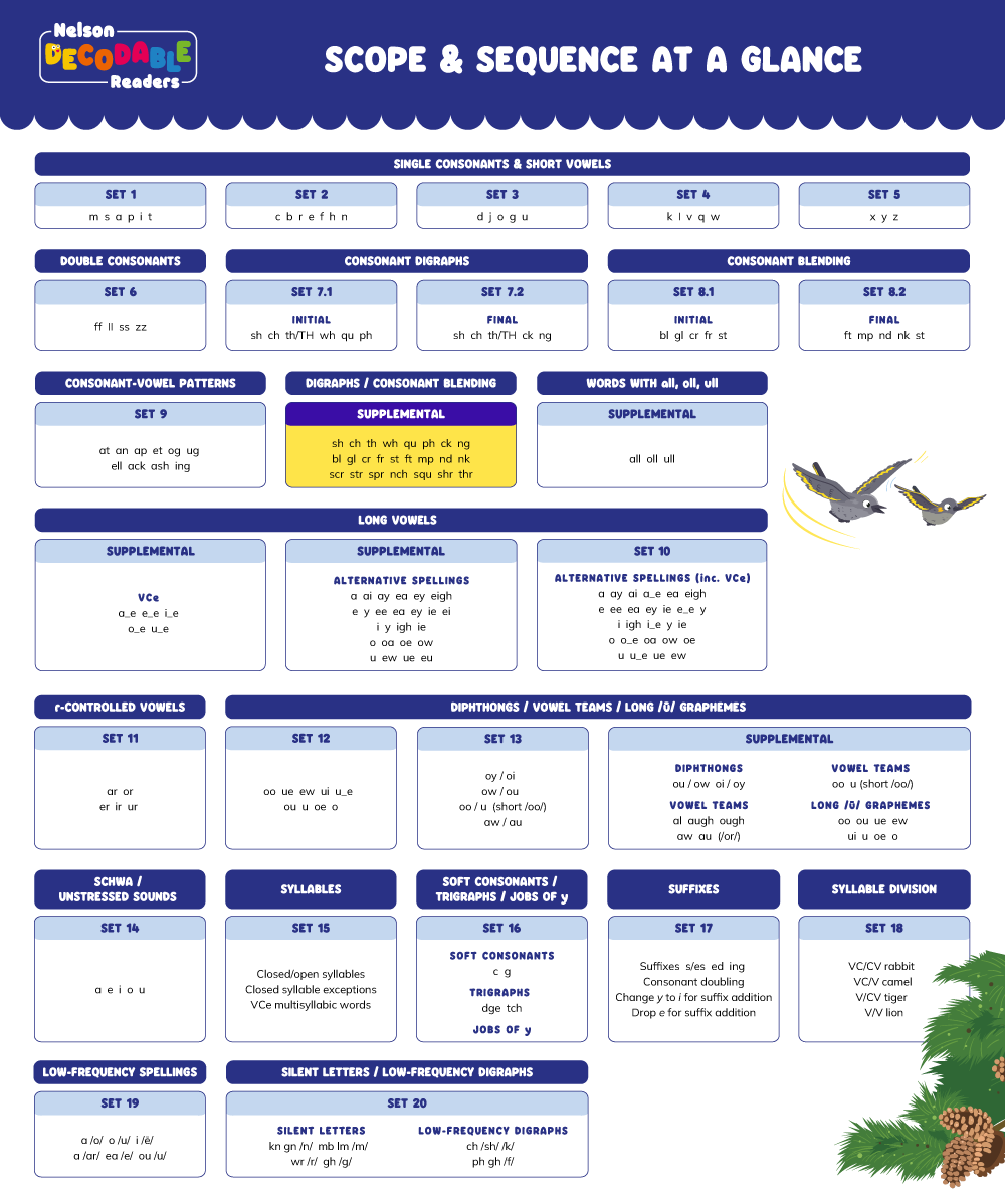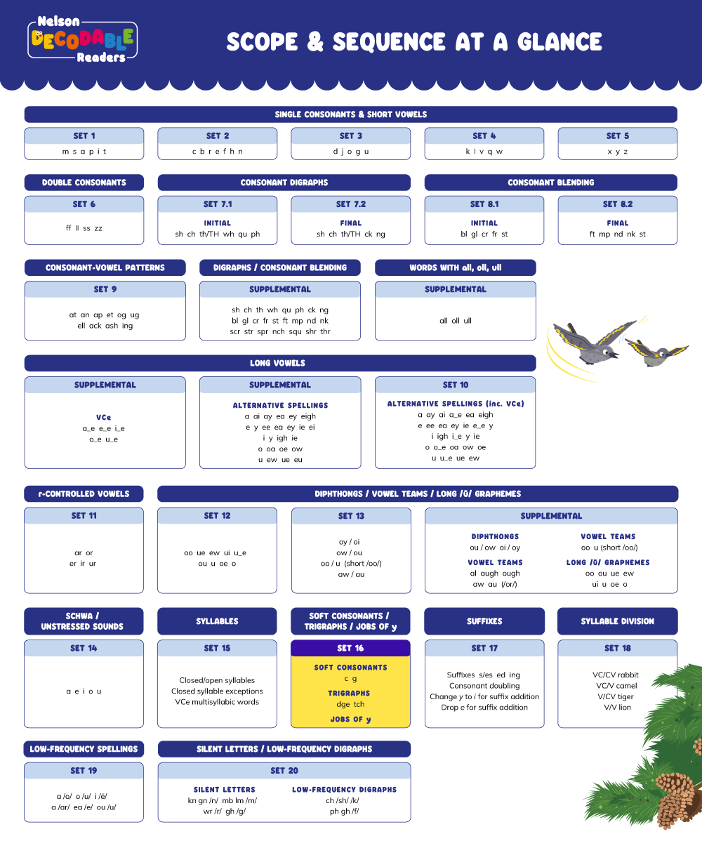 • Flexible implementation that means Nelson Decodable Readers can be used to support your phonics instruction program and fill gaps in your current phonics sequence